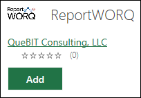- Select the Reportworq add-in to review information about it, and then select Add.