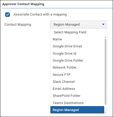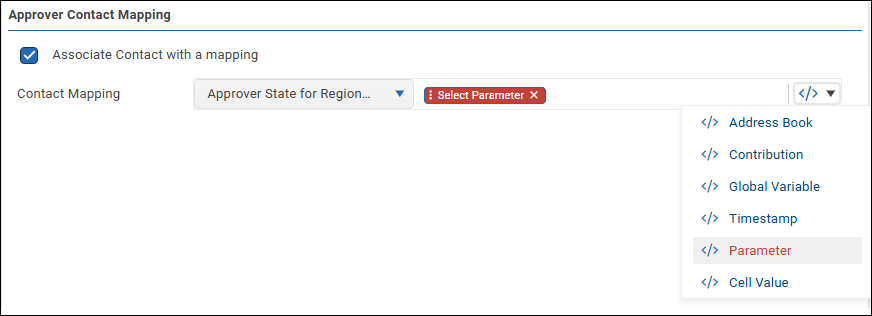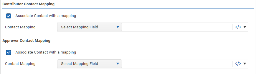 - In the appropriate area (Contributor Contact Mapping or Approver Contact Mapping), select Associate Contact with a mapping.