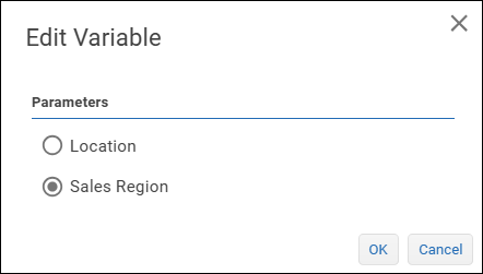 In the following example, a parameter named Sales Region is selected.