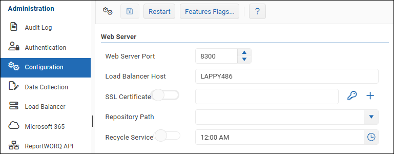 On the Configuration tab, you can see that Reportworq can be configured to run using either SSL or HTTPS: