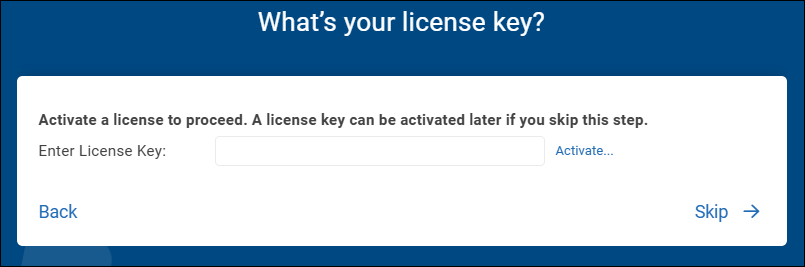 After you select Get Started, you can either enter your license key right away or skip this step and enter it later.