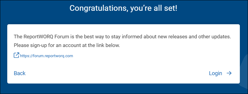Later in this article we’ll also show how to enter the license key after logging into Reportworq.