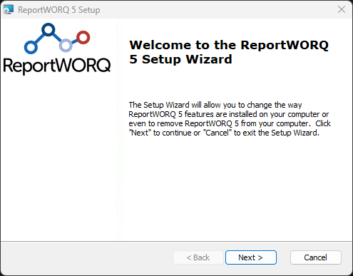 After download is complete, launch the Windows installer (Reportworq_Installer.exe),