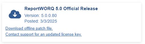 - Online Documentation, located at https://docs.reportworq.com. This site contains the Reportworq User Guide, Administration Guide, Release Notes, and Technical Articles. It also includes links for downloading the Reportworq installer.