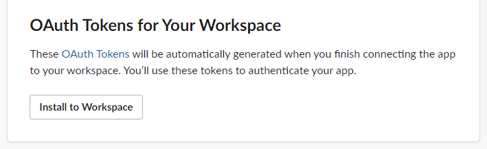 - Scroll to the OAuth Tokens for Your Workspace section and select Install to Workspace.