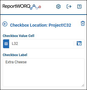 icon and then select the cell. - If you want a text label to be displayed beside the checkbox, type the label text in the Checkbox Label box.