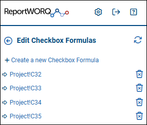 When you select Manage Checkbox Formulas, the Edit Checkbox Formulas area appears. You can define new checkboxes or review and modify existing ones.