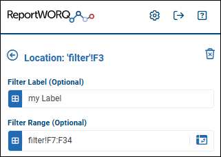 - If you want the cell that contains the filter to display a label, type the label text in the Filter Label box.