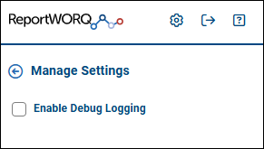 - Enable Debug Logging – If selected, Reportworq creates a detailed activity log that Reportworq Technical Support can use to diagnose problems. Enable this option only if requested to do so by Technical Support.