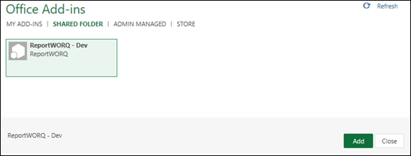- Select Shared Folder, and then Add the Reportworq Add-in: