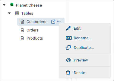 - Open — Launches the model editing interface.